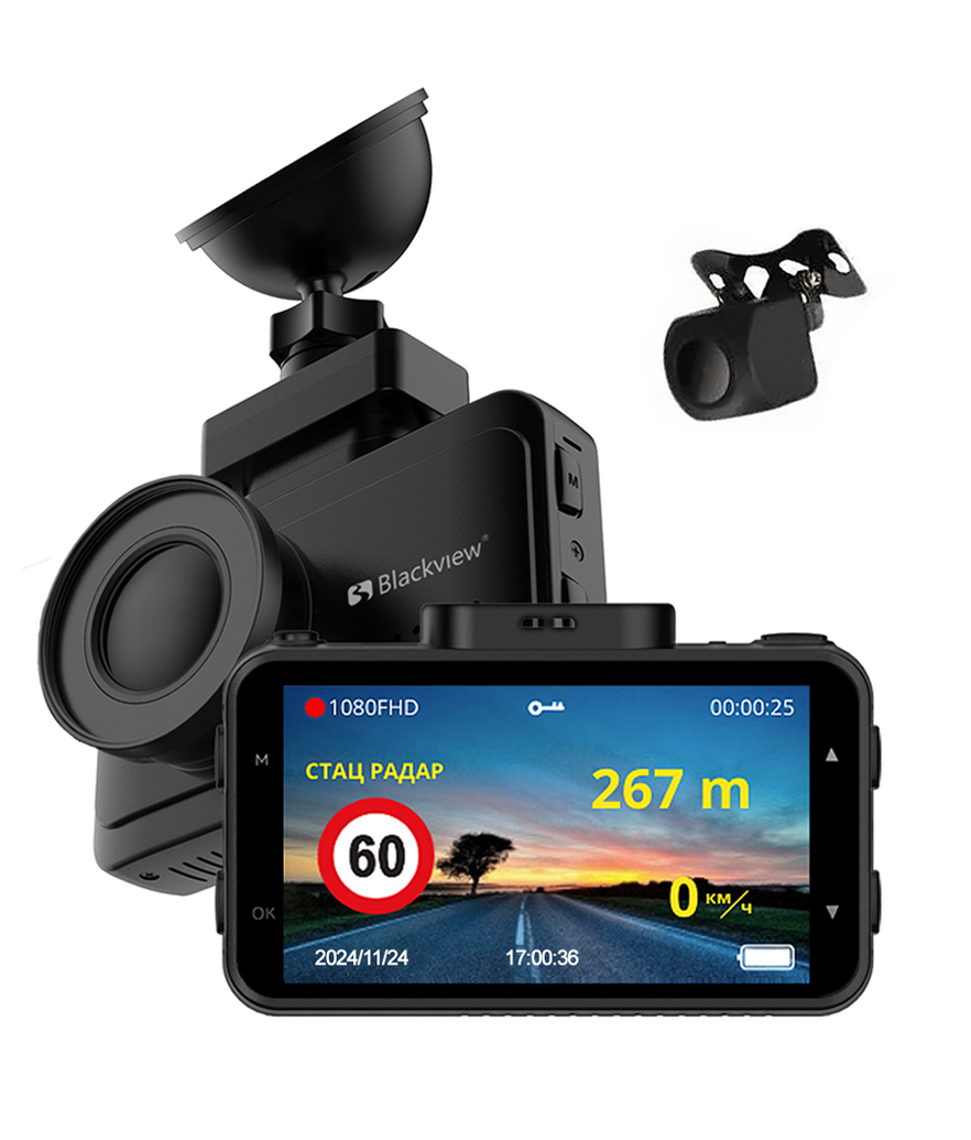 Многофункциональное компактное комбо-устройство 2 в 1 V - флагман в линейки регистраторов BLACKVIEW ! Обеспечивает высокое качество изображения, возможность легкой интеграции в эргономику салона авто и запись в разных форматах. Незаменим на дорогах в городском и особенно в загородном режиме. За счет компактного корпуса занимает мало места на лобовом стекле и не привлекает лишнего внимания. Высокое разрешение видео FULL HD позволяет различать мельчайшие детали на большой дистанции. Приложение для смартфонов Blackview Drive позволит пользователю управлять, настраивать и обновлять устройство и базы полицейских радаров в любое время.