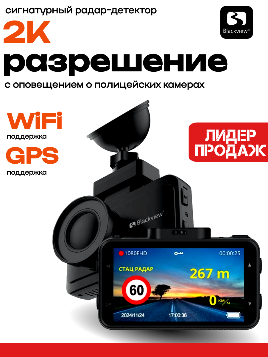 Многофункциональное компактное комбо-устройство 2 в 1 V — флагман линейки регистраторов BLACKVIEW! Обеспечивает высокое качество видео, легко интегрируется в интерьер авто и записывает в разных форматах. Идеально подходит для городских и загородных поездок: компактный корпус занимает мало места и не отвлекает на лобовом стекле. Видеo с разрешением 2K ловит даже мельчайшие детали на большом расстоянии. С приложением Blackview Drive удобно управлять устройством и обновлять базы радаров прямо со смартфона в любое время.