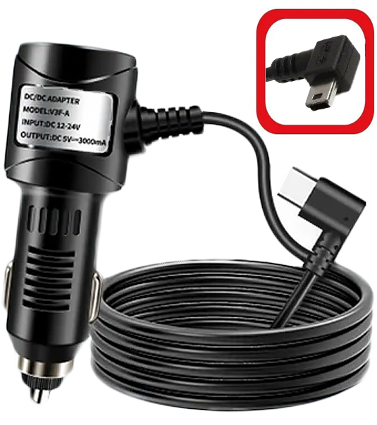 Зарядное устройство: кабель miniUSB, 3.5 м, 3A, 5В, угловой разъём (левый)